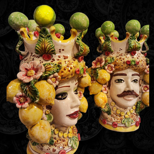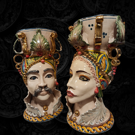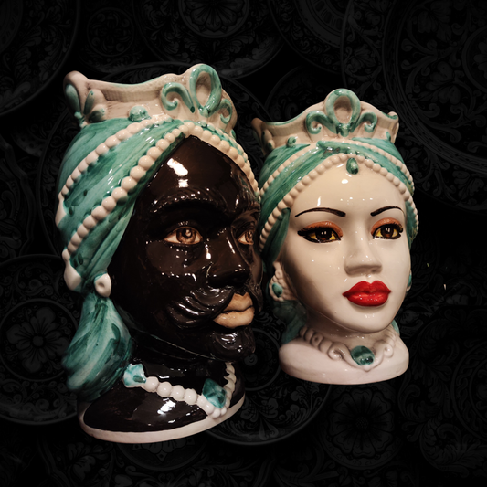 Coppia di Teste di Saraceni in Ceramica di Caltagirone - 26 cm - Edizione Limitata