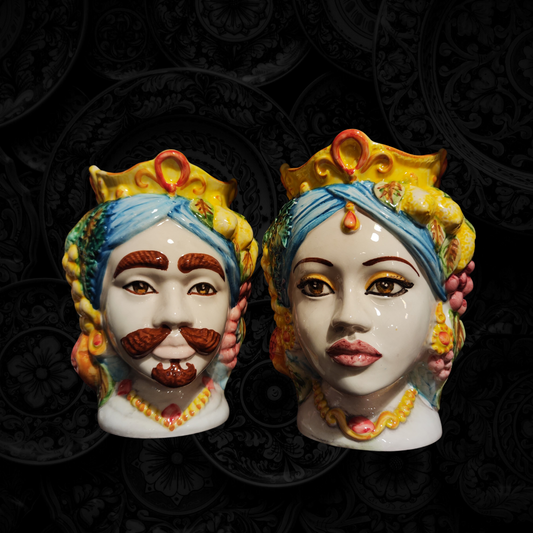 Coppia Teste di Saraceni in Ceramica di Caltagirone 25 cm - Edizione Limitata