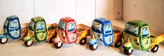 In offertaApetta tre ruote in ceramica di Caltagirone