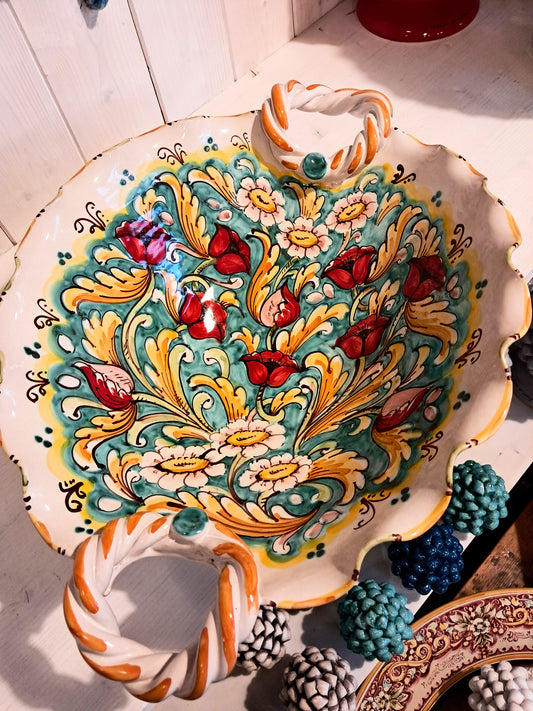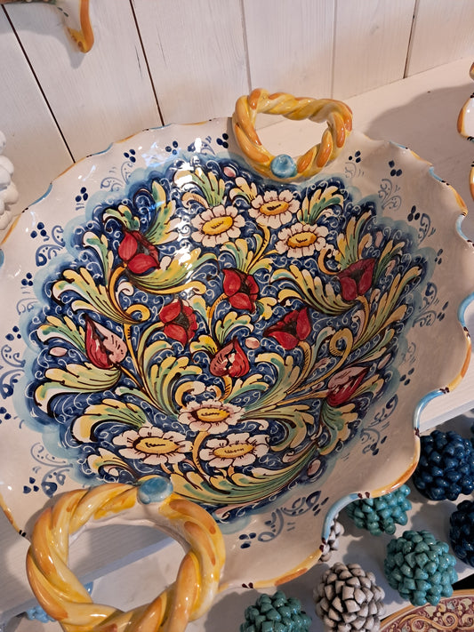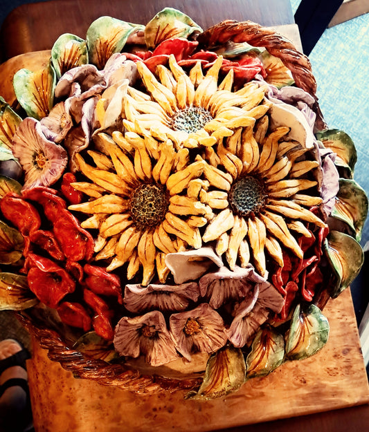 Cesto Fiori e girasoli in ceramica di Caltagirone originale