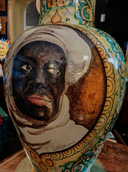 Coppia di Teste di Saraceni in Ceramica di Caltagirone - 26 cm - Edizione Limitata