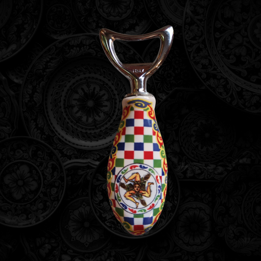 Apribottiglie Artigianale in Ceramica di Caltagirone - Eleganza Siciliana Dipinta a Mano